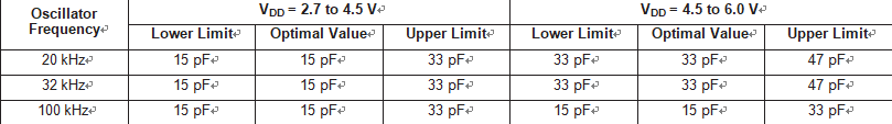 > > Recommended oscillator capacitors for use with the low frequency oscillator option