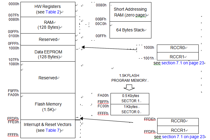 > > Memory Map (ST7LITE0)